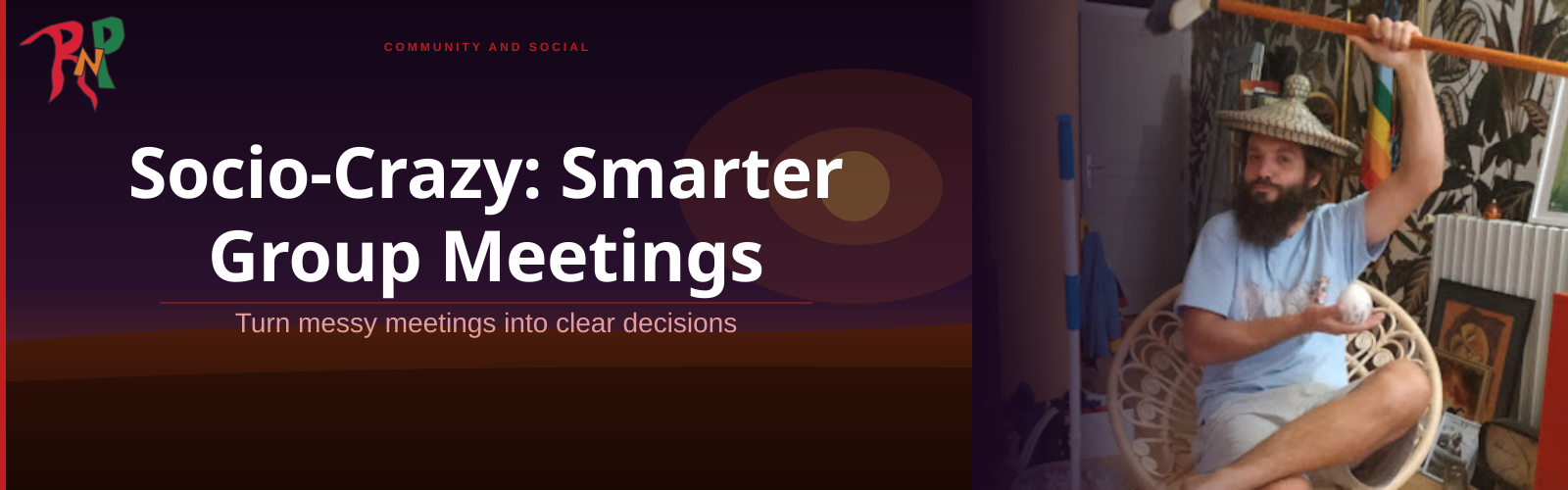 Socio-Crazy is a practical variation of sociocracy designed to support clear and effective meetings. It works particularly well for informal groups and volunteer networks, while remaining useful for organisations of any size.